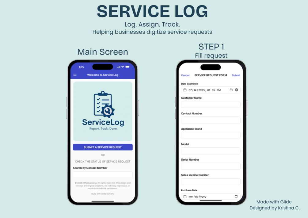 ServiceLog – Appliance Service App Template (Mobile, Glide)(UI Figma)